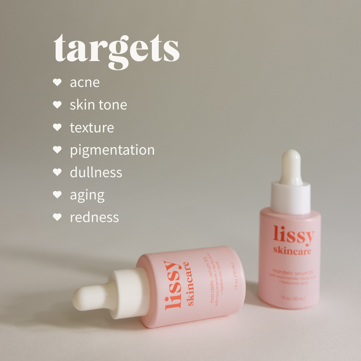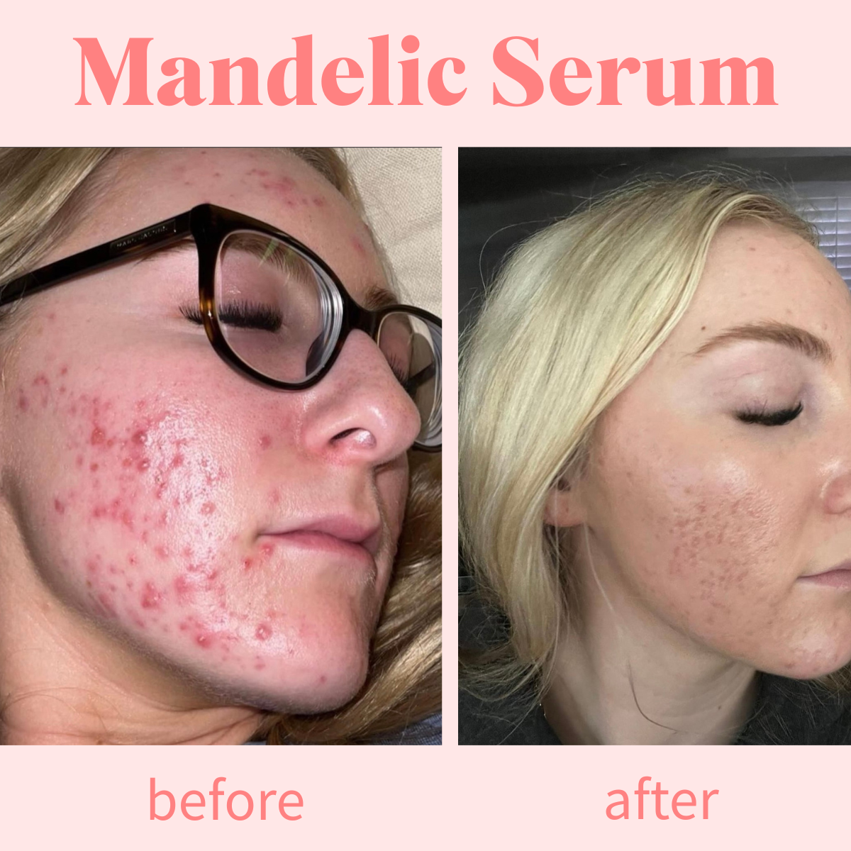 I've only been using the mandelic serum for about a week, and I'm already seeing a noticeable difference in my skin texture and breakouts. I've dealt with heavy and painful breakouts since my freshman year in college and have tried every cleanser, medication, and cream under the sun, as well as gone through boxes and boxes of pimple patches. I have gone through heavy purging medications and gained temporary solutions, but nothing like this so soon--I have results for stubborn breakouts that haven't gone away in such a long time! I am so impressed with this, as I was skeptical at first. I'm so glad I stumbled across this, and I'm finding relief and happiness with my skin after almost a five-year battle. If you're on the fence like I was, go for it! You won't regret it! :)